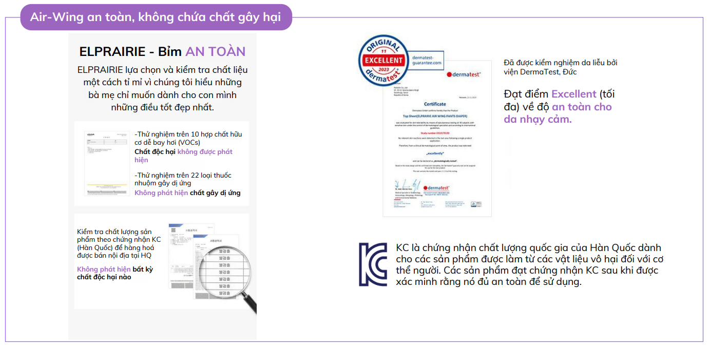 - Hoàn thành kiểm nghiệm không gây kích ứng cho da nhạy cảm với xếp hạng Excellent do viện nghiên cứu da liễu Dermatest của Đức tiến hành.