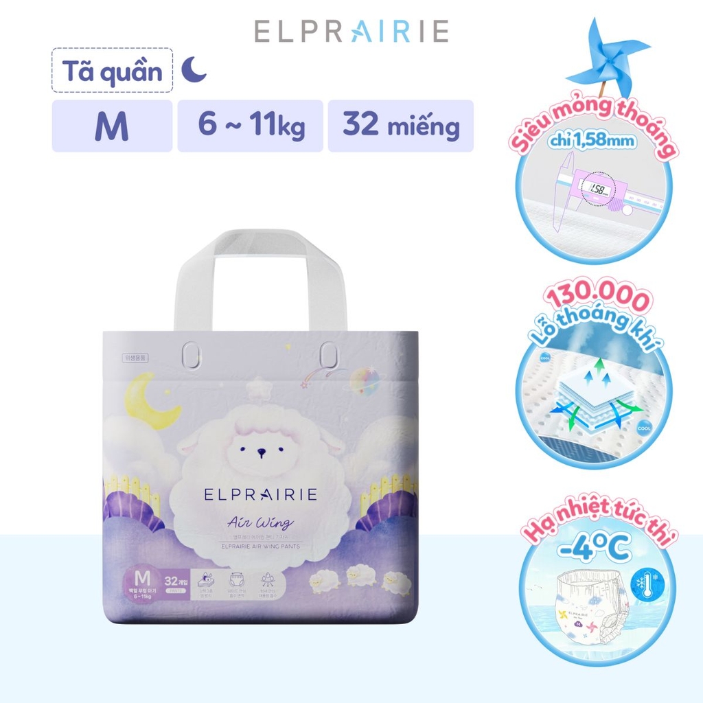- Có 100.000 lỗ thoáng khí. Phần bụng và eo dày đặc các lỗ thoát khí, không gây bí bách vùng bụng và lưng bé, hạn chế ra mồ hôi và không bị hăm ngứa, giúp các bé sử dụng tã/ bỉm Elprairie cho mùa hè luôn thoải mái, mát mẻ.