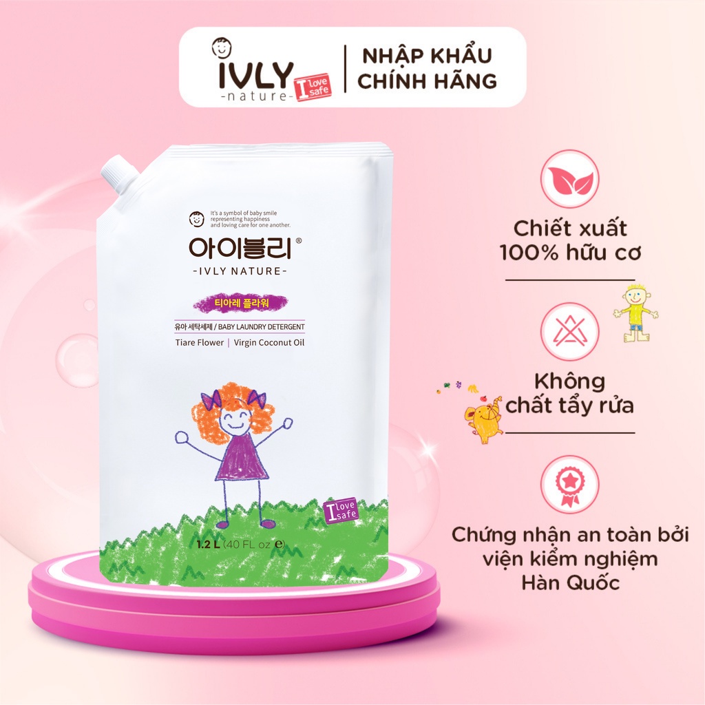 Nước giặt quần áo cho trẻ sơ sinh IVLY NATURE hương hoa Tiare dạng túi 1200ml, nhập khẩu Hàn Quốc ivly008