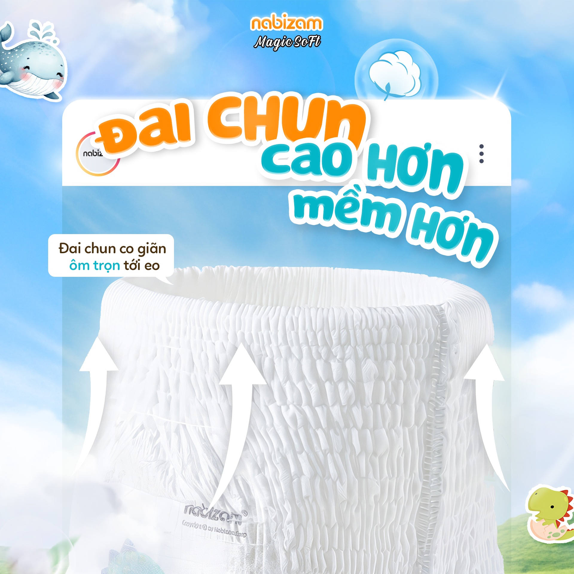 Nabizam Magic Soft có khả năng thấm hút vô cùng ấn tượng với các lớp lõi thấm hút nguyên khối đặc biệt. Để tăng khả năng thấm hút, mỗi miếng bỉm Magic Soft đều có rãnh thấm hút giúp giảm tràn bỉm một cách tối đa.
